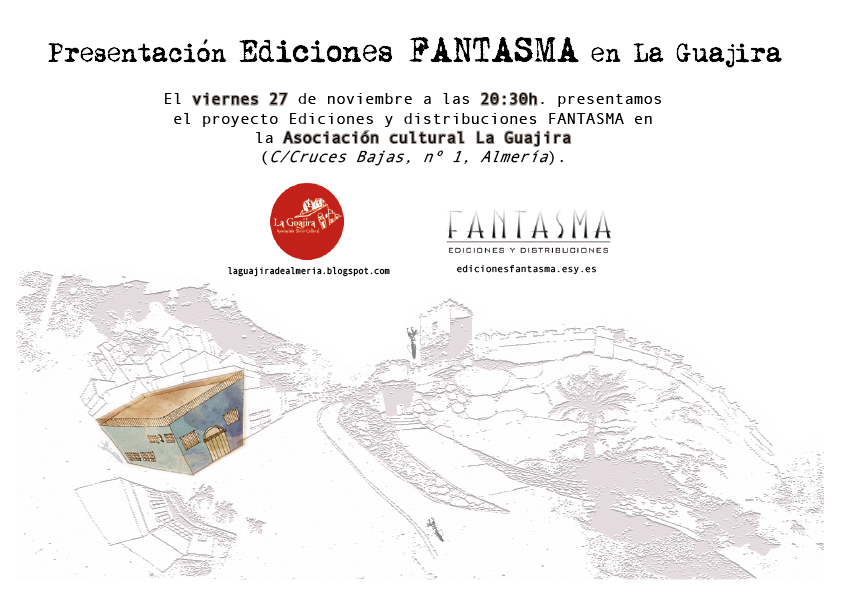 El viernes 27 de noviembre a las 20:30h. estaremos presentando el proyecto Ediciones y distribuciones Fantasma en la Asociación cultural La Guajira (C/Cruces Bajas, nº 1, Almería).
