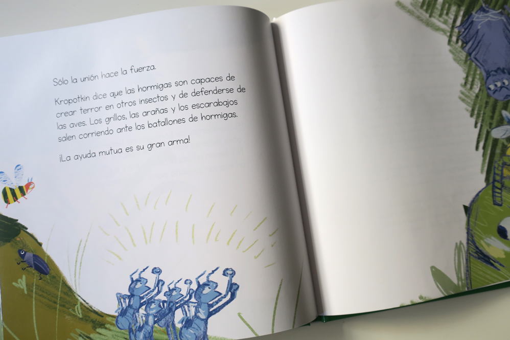La serie [Kropotkin dice], dentro de la colección de libro infantil “Fantasmitas”, es una adaptación pedagógica del ensayo “El apoyo mutuo” del zoólogo ruso Piotr Kropotkin, uno de los principales teóricos del comunismo libertario.