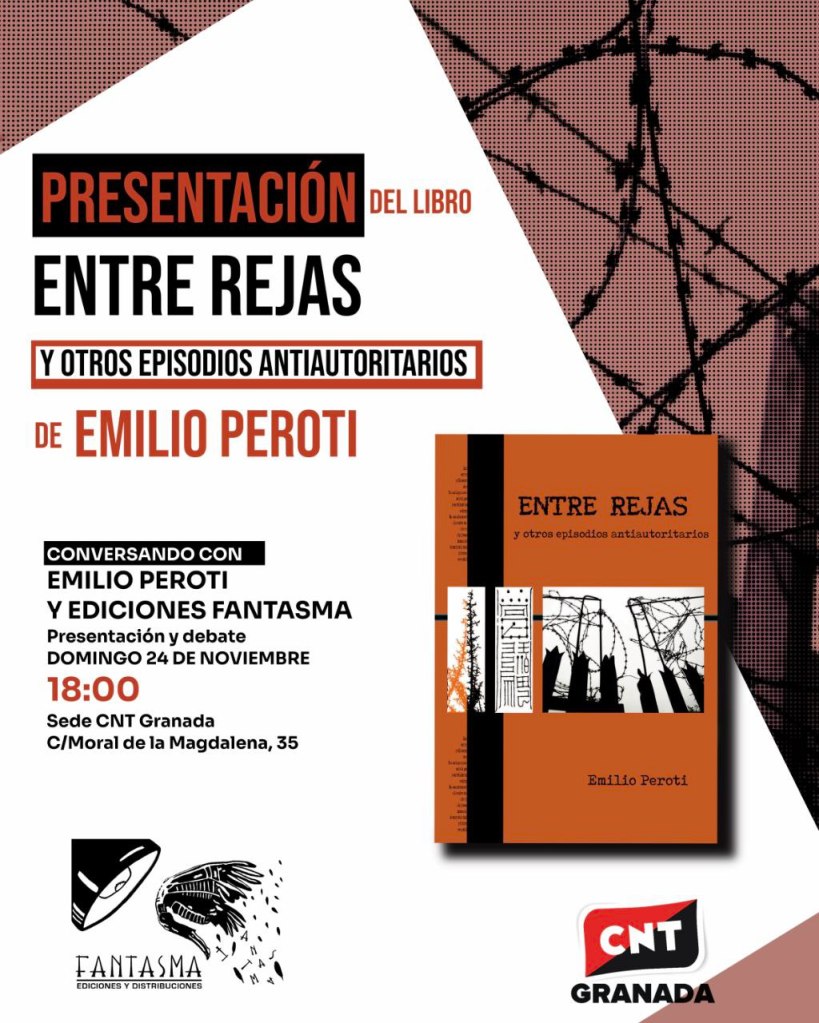 – El próximo domingo 24 de noviembre a las 18:00, el autor estará acompañado por los editores en el local de CNT Granada (C/Moral de la Magdalena, 35, Granada).