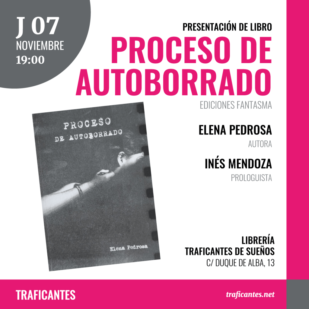 Doble presentación de Proceso de Autoborrado – Elena Pedrosa. De la colección Poesía por otros medios.