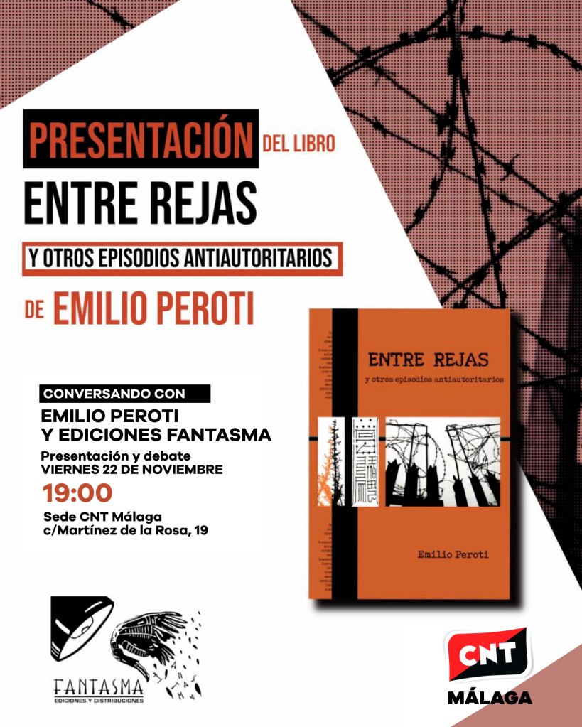 – El próximo viernes 22 de noviembre a las 19:00, el autor estará acompañado por los editores en el local de CNT Málaga (C/Martínez de la Rosa, 19, Málaga).