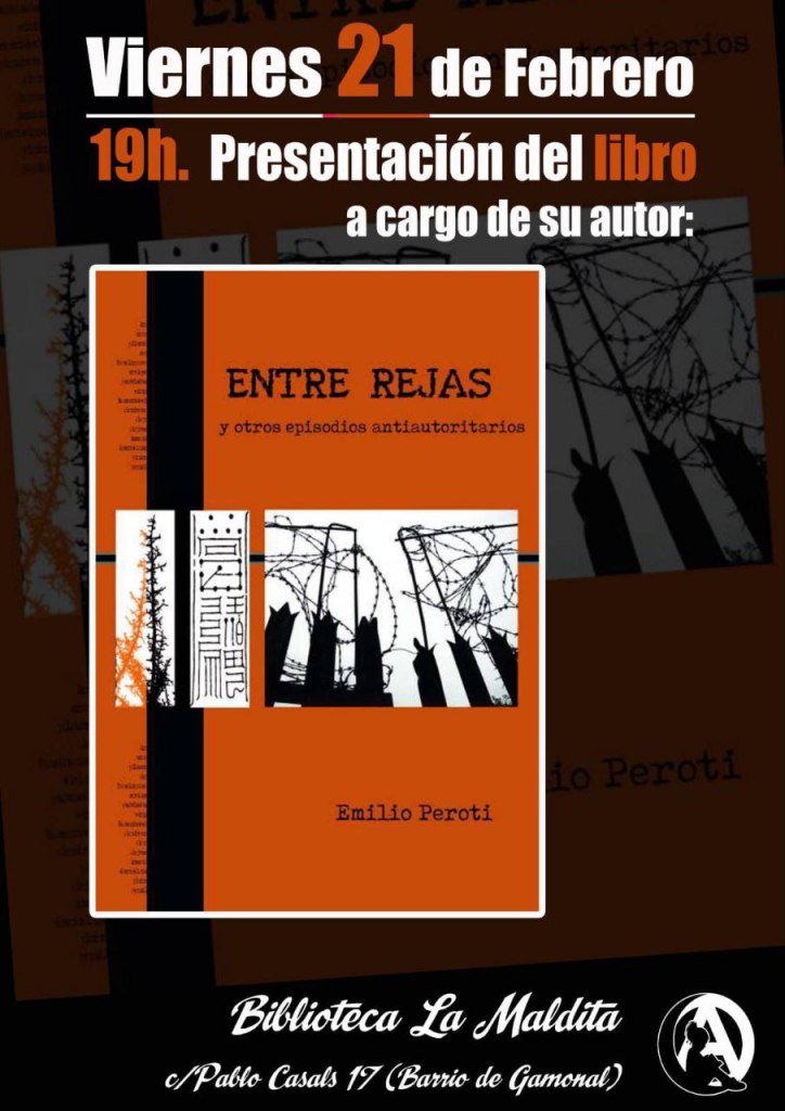 Presentación de Entre rejas y otros episodios antiautoritarios – Emilio Peroti. De la colección Literatura Incendiaria.